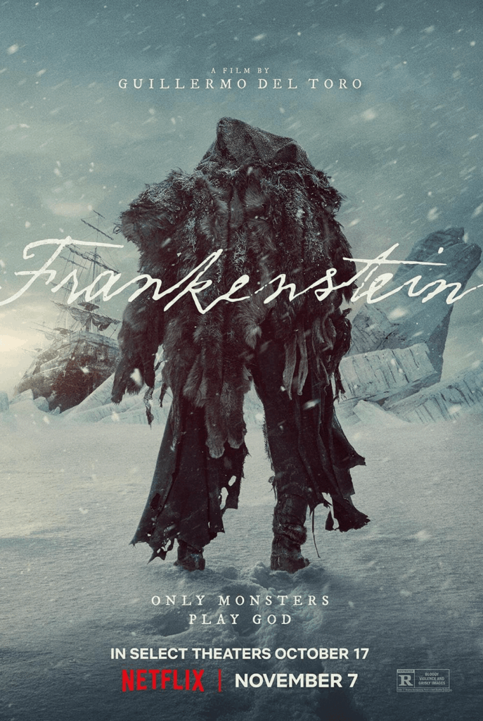 Wohl weil ich nie ein echter Horrorfilm-Fan war sind „Frankenstein“-Verfilmungen bisher komplett an mir vorbeigegangen. Wobei ich mich ehrlich gesagt auch nicht an viele erinnern kann. Nun hat Guillermo del Toro aus dem Stoff einen zweieinhalbstündigen Film gemacht, der zunächst auf Festivals und dann sehr begrenzt im Kino lief – und jetzt zum Netflix-Programm gehört.