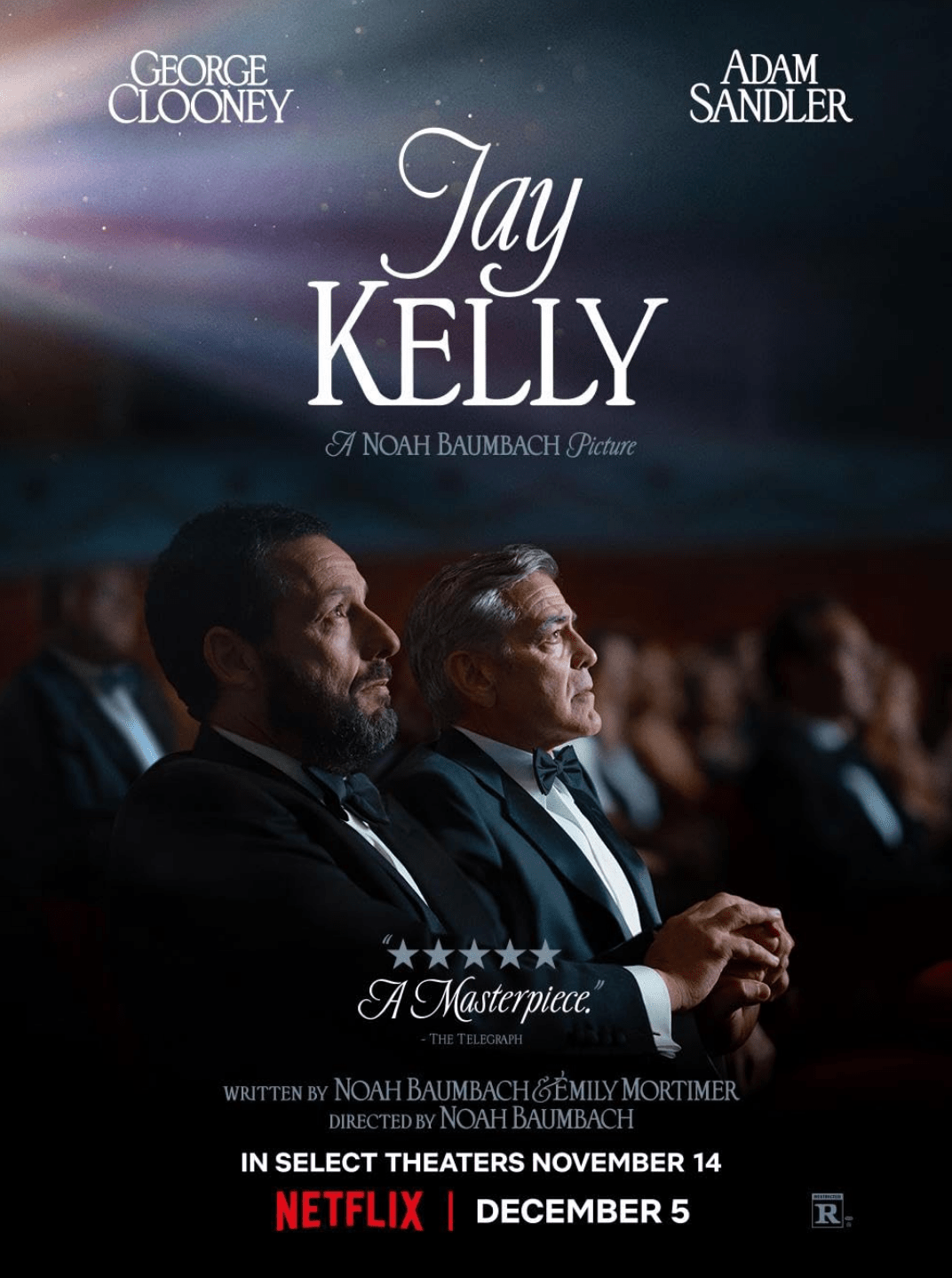 „Jay Kelly“ erzählt vom Roadtrip seiner Hauptfigur nach Europa, und setzt zwischendurch immer wieder auf Rückblenden, die Schlüsselmomente seines Lebens zeigen. So schaut man Clooney häufig dabei zu, wie er (vermeintlich) einfach Clooney bzw. ein Hollywoodstar ist. Verdammt charmant und witzig, aber irgendwie auch wenig greifbar und oberflächlich. Dazu ständig umgeben von Menschen, die sich voll und ganz seinem Wohlbefunden verschrieben haben (unter ihnen Adam Sandler als sein Manager, in einer so seltenen wie gern gesehenen ernsten Rolle).